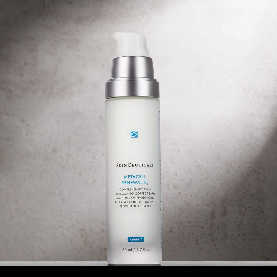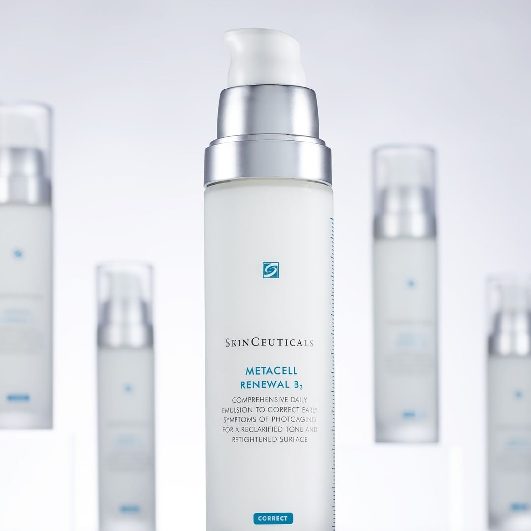 - يستخدم Metacell Renewal B3 مستحلبًا مائيًا ينتظر الحصول على براءة اختراع لتقديم تركيز عالٍ من 5٪ نياسيناميد (فيتامين ب 3) جنبًا إلى جنب مع تركيز ثلاثي الببتيد ، و 15٪ جلسرين نقي لمعالجة العلامات المبكرة للتشيخ الضوئي.