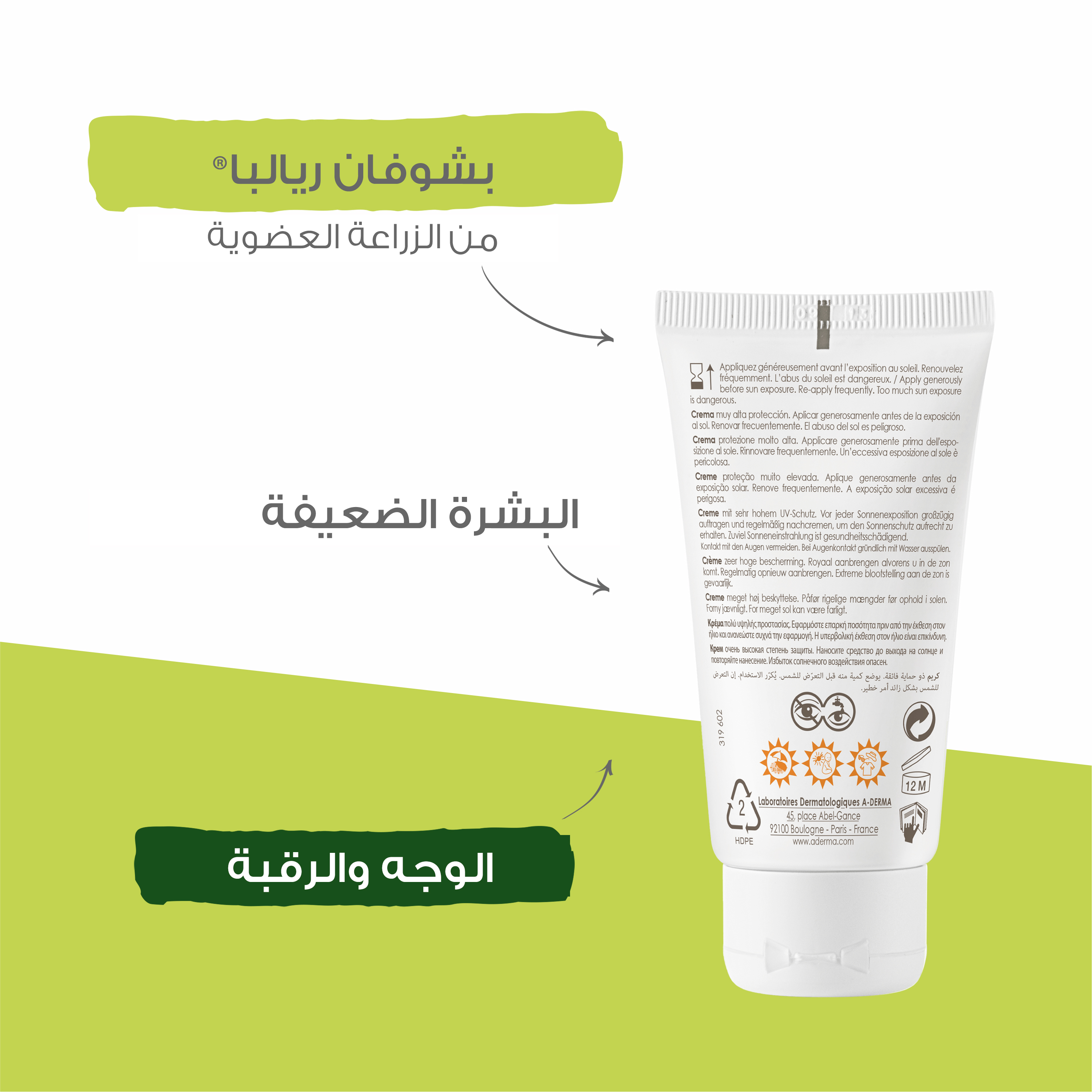 - يوضع بسخاء على الوجه والرقبة قبل التعرض للشمس.