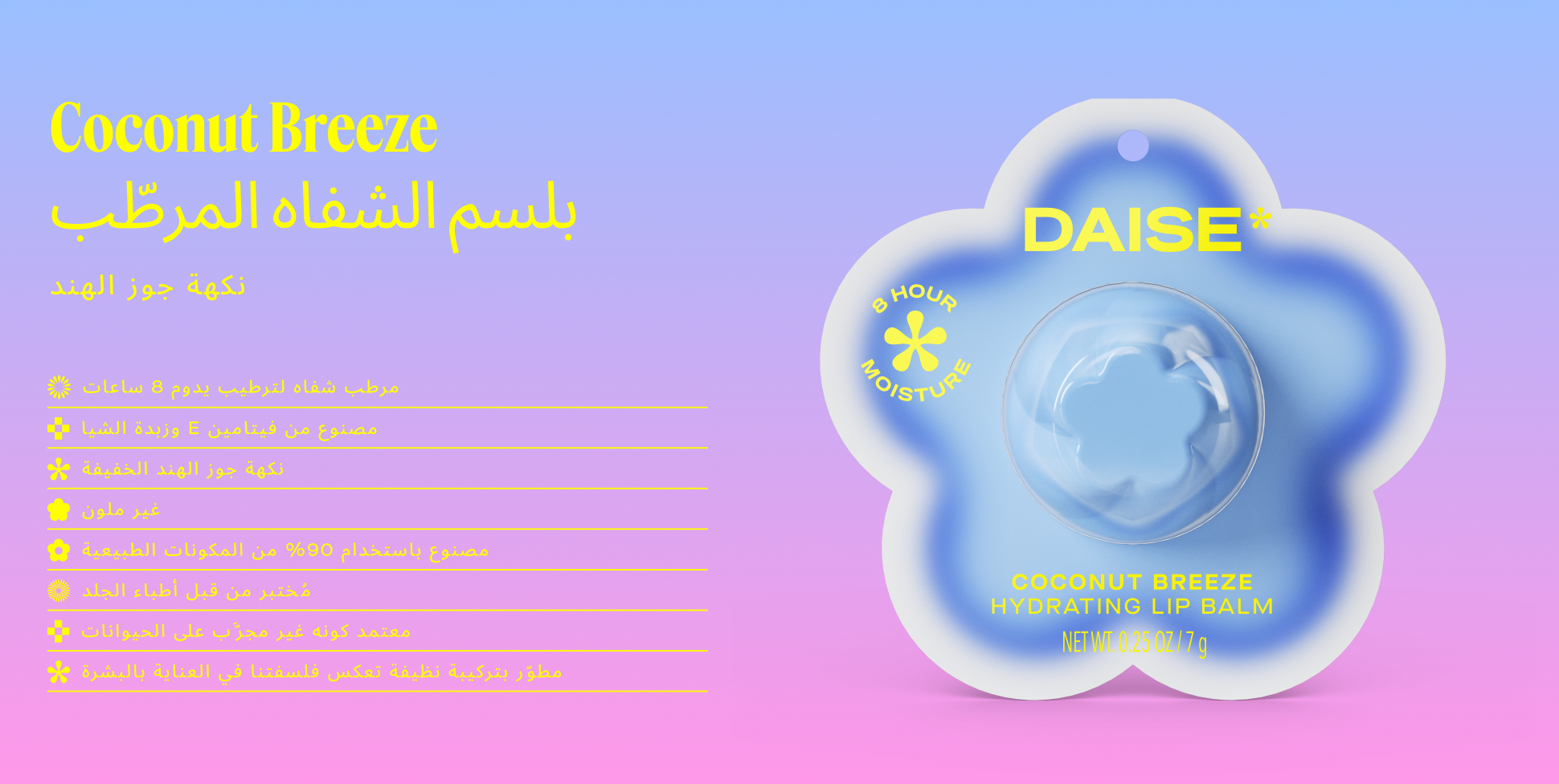 تم تركيب بلسم الشفاه المرطب للشفاه دايز المرطب بنسيم جوز الهند الغني بالفوائد بتركيبة غنية بالمكونات المفيدة للبشرة مثل فيتامين E وزبدة الشيا وزيوت جوز الهند والأفوكادو لضمان ترطيب الشفاه لمدة 8 ساعات وتنعيمها وترطيبها لفترة أطول. تم اختباره من قبل أطباء الجلدية وصيغته مع وعدنا النظيف مع مكونات طبيعية بنسبة 90%، تتميز هذه التركيبة غير الجافة بنكهة جوز الهند الخفيفة ولكنها غير ملونة، مما يجعلها مثالية للاستخدام طوال اليوم. بستة نكهات غنية بالعصائر، هذه المستحضرات اللطيفة التي يمكن جمعها من الشفاه تكاد تكون جيدة بما يكفي لتناولها: هناك نسيم جوز الهند، الرمان العصير، النعناع المفعم بالحيوية، قبلة الفراولة، الفانيليا الفائقة، والبطيخة الساحقة. أيًا كان مزاجك فهناك دايز يناسبك، لذا اجمعي النكهات والألوان المفضلة لديك لتتناسب مع مزاجك.