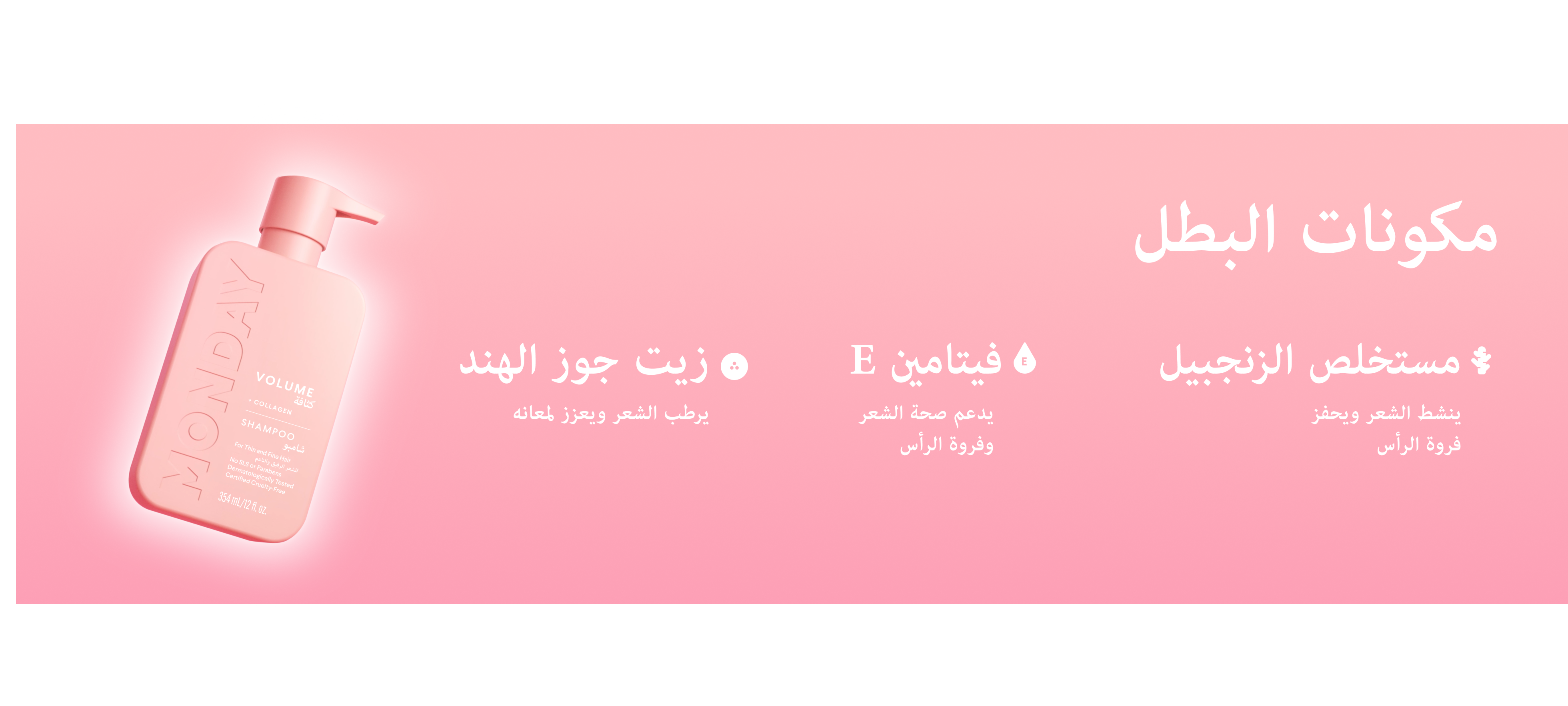 - يحتوي شامبو VOLUME شامبو VOLUME الحائز على جوائز من مونداي للعناية بالشعر على مكونات نشطة وكولاجين متحلل مائي وعناصر طبيعية منشطة مثل زيت المكاديميا المثالي للشعر الخفيف والمسطح الذي يحتاج إلى مزيد من الامتلاء والقوام.
