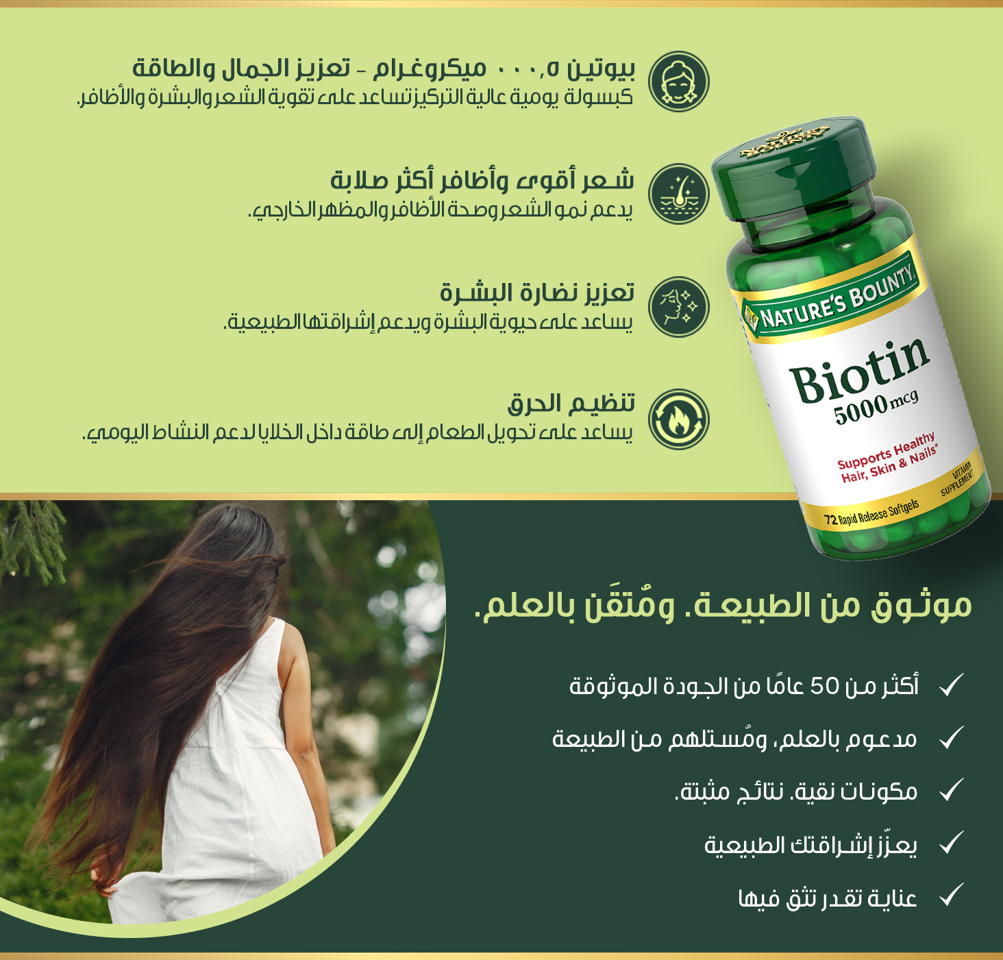 ناتشورز باونتي بيوتين 5000 ميكروغرام 72 كبسولة هلامية
