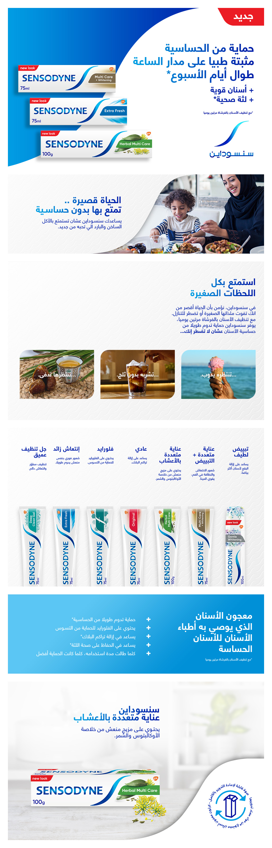 إنه معجون أسنان لحساسية الأسنان للاستخدام اليومي بمستخلصي الأوكالبتوس والشمر. يوفرسنسوداين بالأعشاب للعناية المتعددة كل فوائد معجون الأسنان العادي ولكن مع حماية طوال اليوم وطوال الأسبوع من حساسية الأسنان.