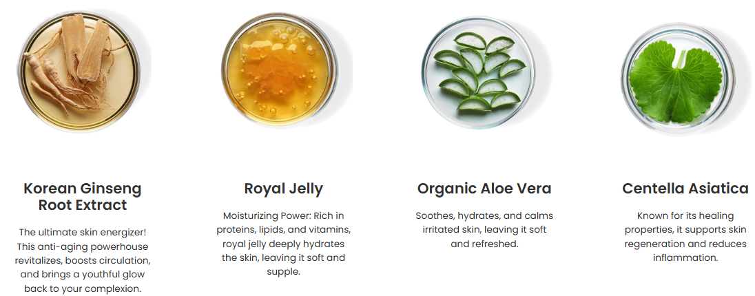 • الجنسنج الكوري والجيلي الملكي لتحفيز الكولاجين واستعادة التماسك