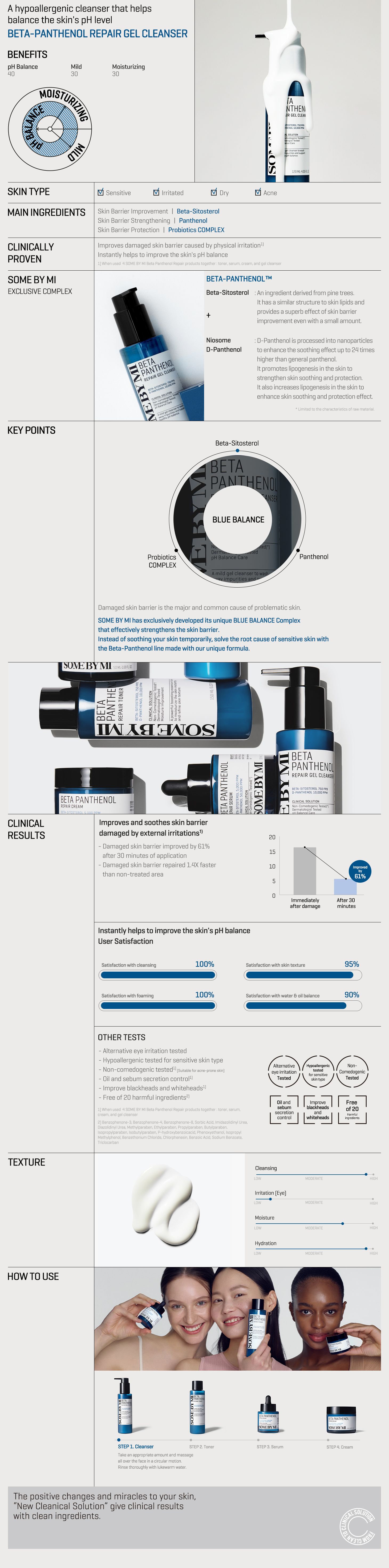 - يساعد على تحسين توازن الافرازات الدهنية في البشرة. يحتوي على مركب بيتا بانثينول الفريد من سوم باي مي.