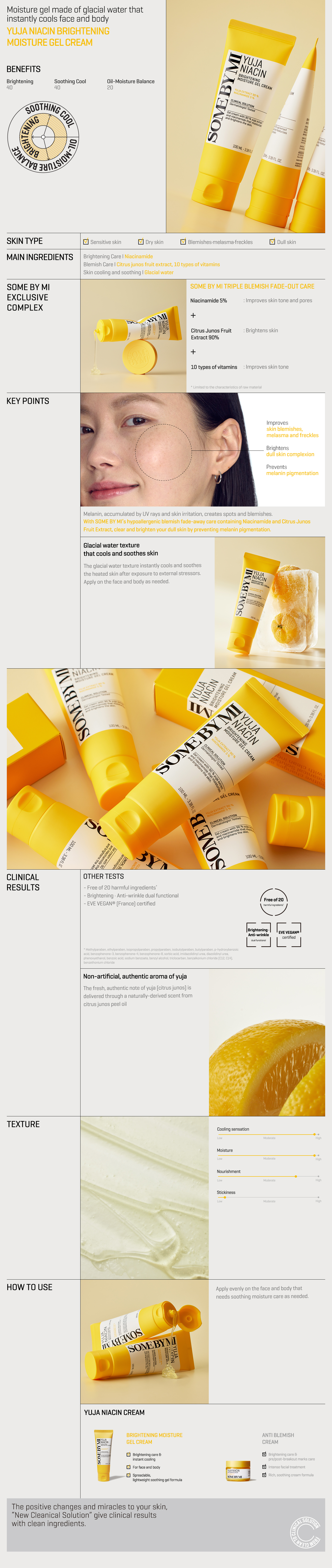 - يحتوي على 90% من مستخلص Goheung Yuja الغني بفيتامين C الطبيعي وبالتالي يقلل من بقع التصبغ ويعطي بشرة متجانسة ومشرقة.