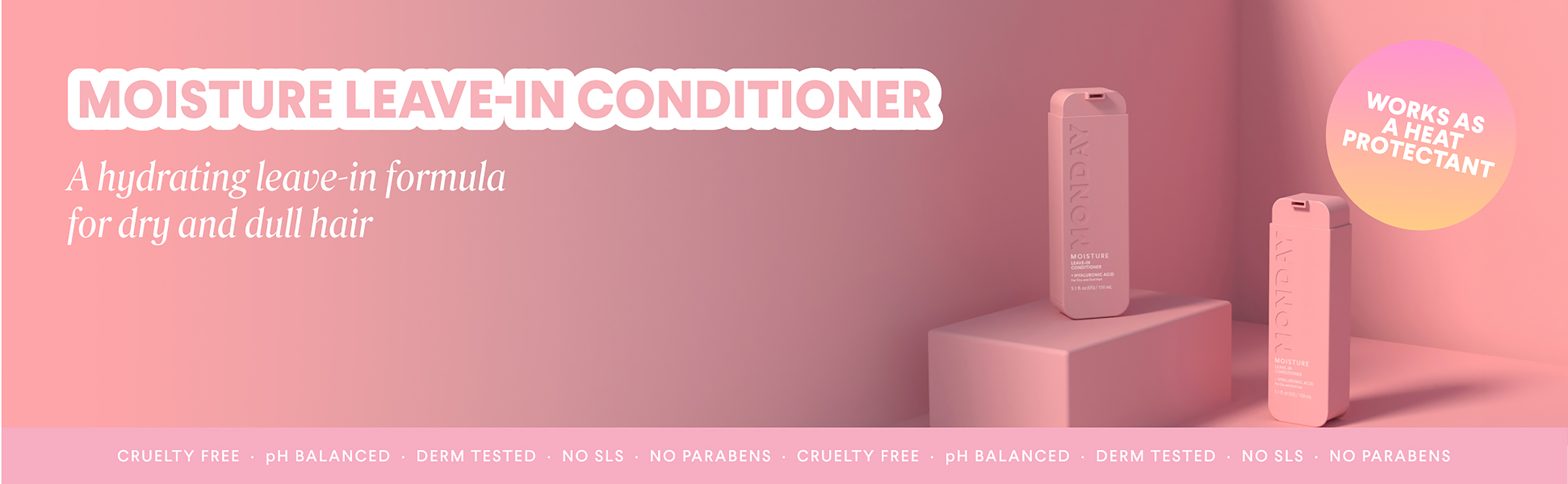 • MONDAY Haircare’s MOISTURE Leave-In Conditioner is a multi-tasker that promotes longer, healthier hair by deeply hydrating, as well as protecting from heat and breakage.