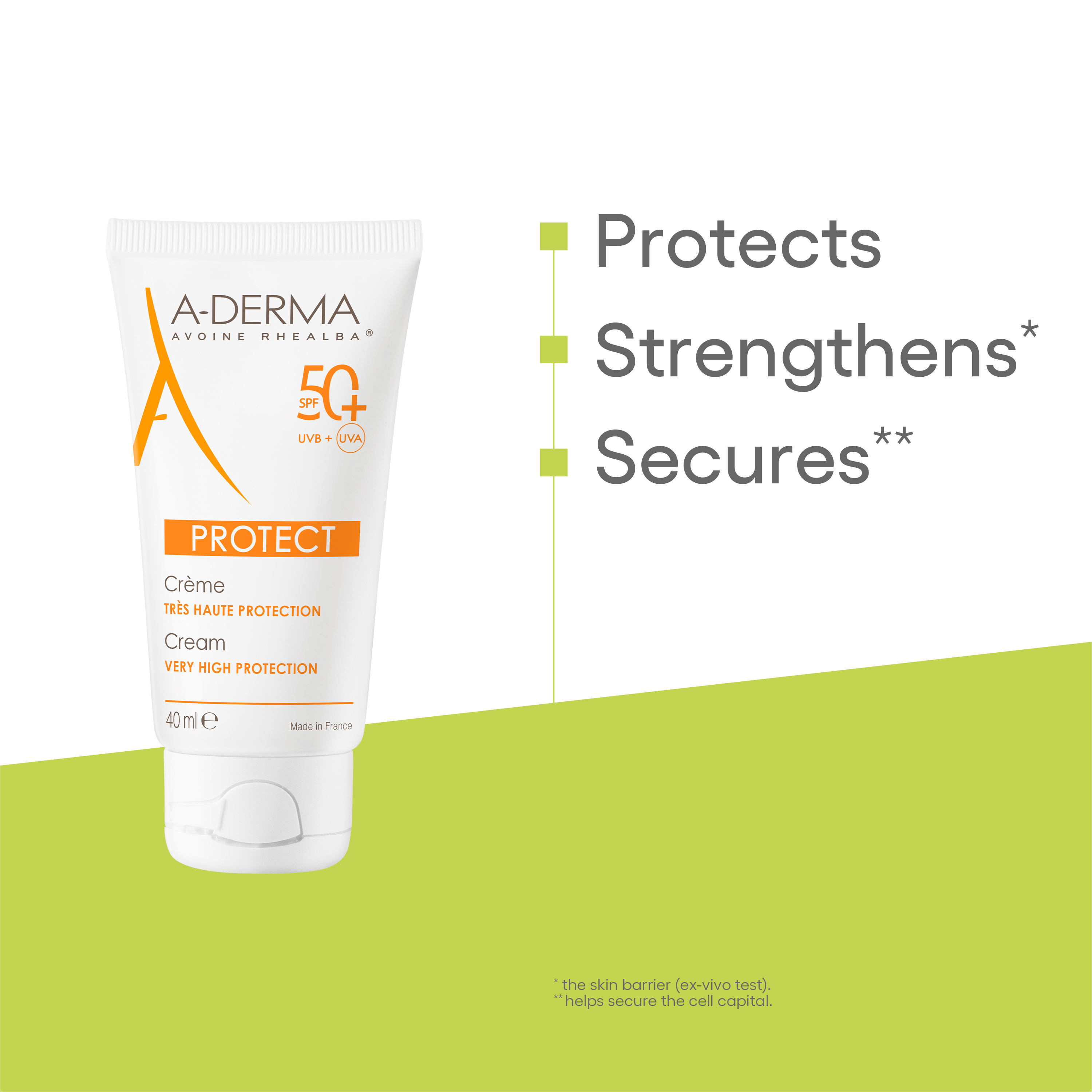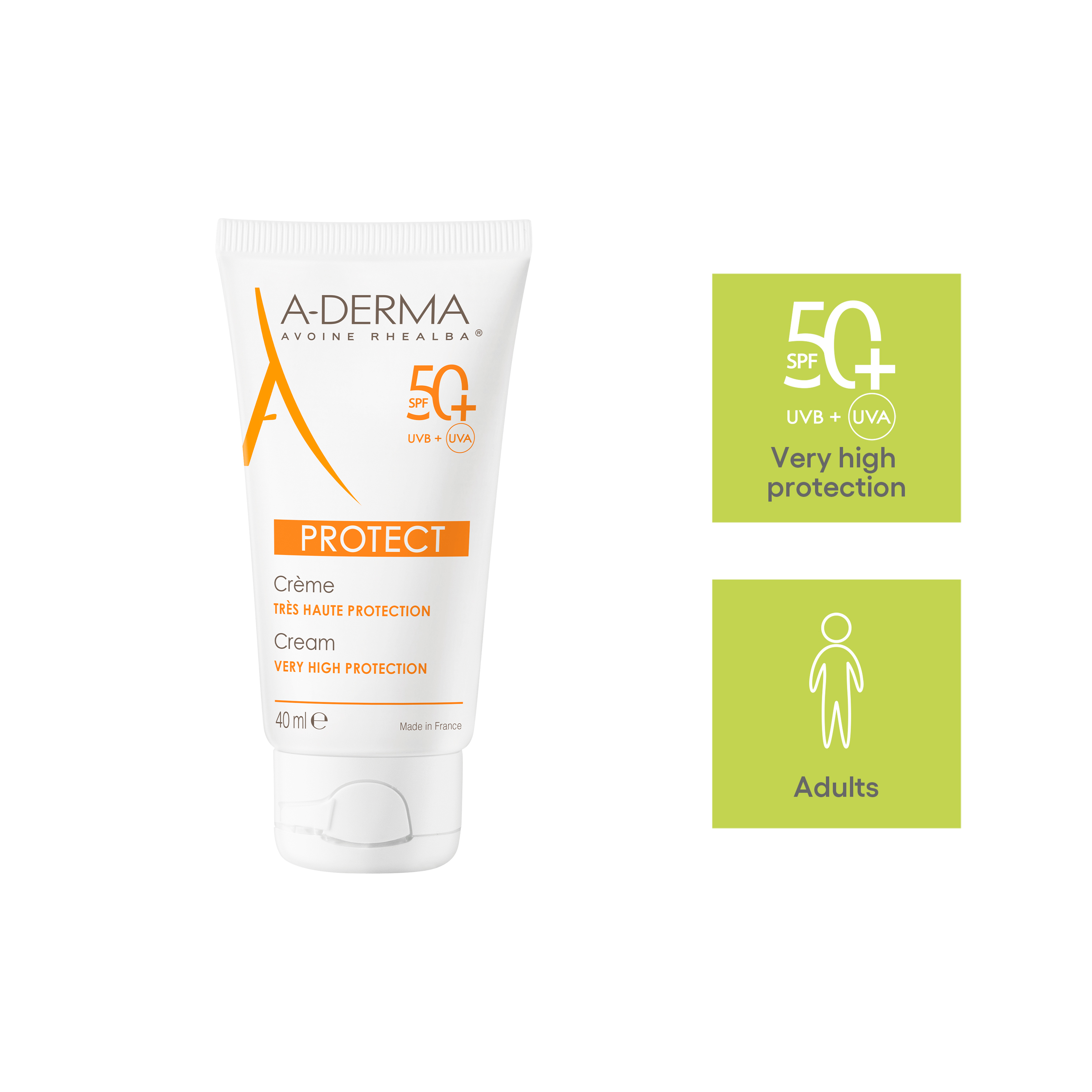 - The A-DERMA PROTECT SPF 50+ Very High Protection Fragrance-Free Cream moisturises and provides comfort!