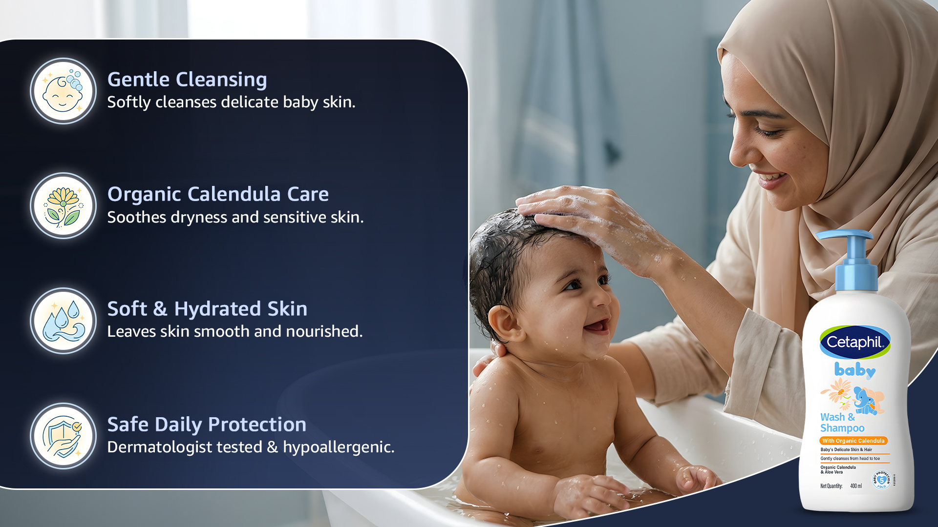 Cetaphil Baby Wash & Shampoo With Organic Calendula - 400 ml