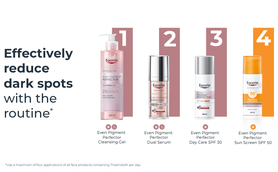 - A complete daily even skin tone routine Introducing Eucerin® Even Pigment Perfector cleansing gel, a vital step in your skincare routine for optimal absorption of Thiamidol® Anti-Pigment cream.