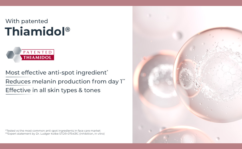 - Dark spot reduction used together with Thiamidol Even Pigment Perfector Dual Serum