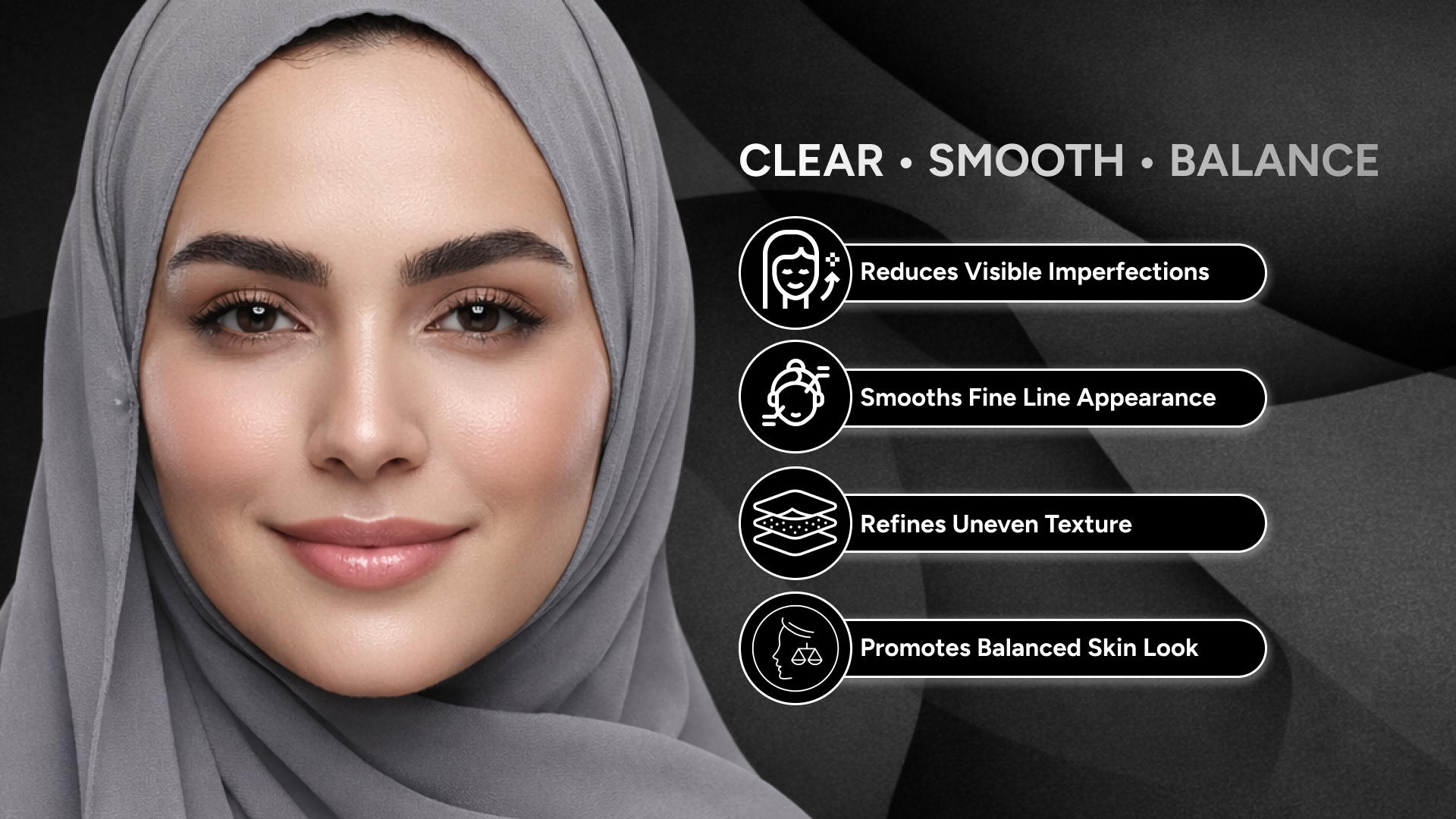 - Skin issues: adult skin with imperfections, excess sebum, enlarged pores, uneven skin texture;