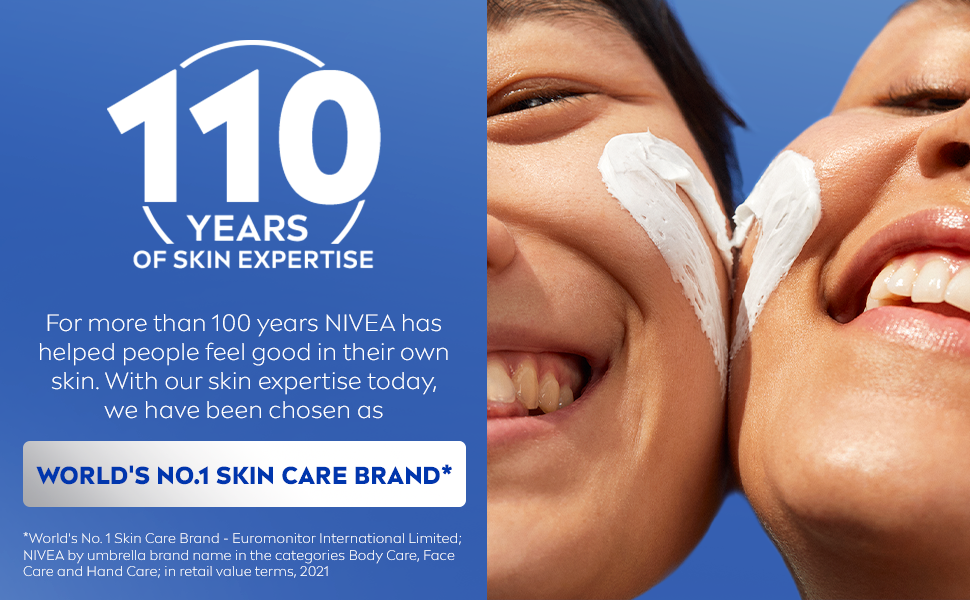 - WORLD’S #1 SKINCARE BRAND: For more than 100 years, NIVEA has helped people feel good in their own skin. With our skin expertise today, we have been chosen as the world’s #1 skincare brand (Source: Euromonitor International Limited; NIVEA by umbrella brand name in the categories Body Care, Face Care and Hand Care; in retail value terms, 2021; issued Sept. 2022).