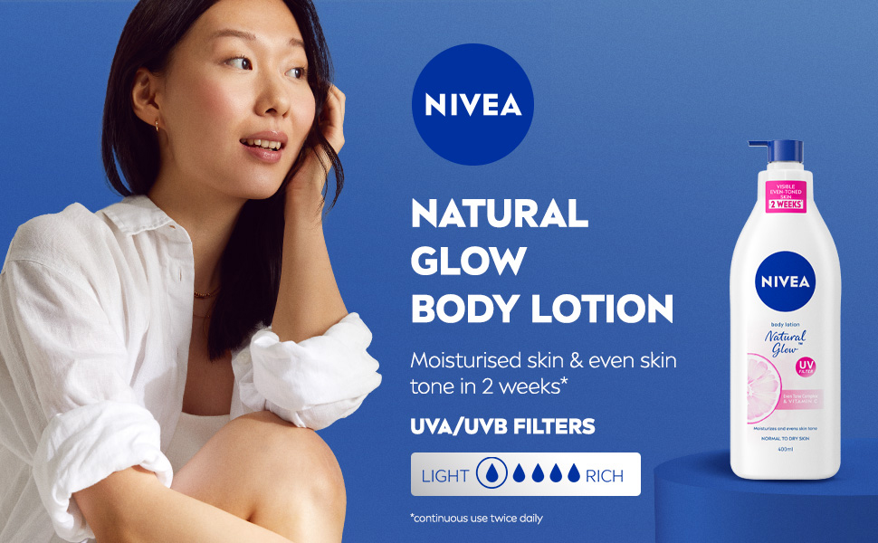 - Looking for a body lotion that hydrates with a natural, healthy glow? Try NIVEA Natural Glow Body Lotion—our moisturizing lotion with 95% Pure Vitamin C not only locks in moisture into the skin but also helps achieve even-toned, glowing skin.