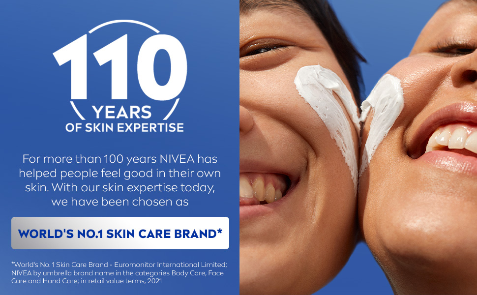 - WORLD’S #1 SKINCARE BRAND: For more than 100 years, NIVEA has helped people feel good in their own skin. With our skin expertise today, we have been chosen as the world’s #1 skincare brand*. Source: Euromonitor International Limited; NIVEA by umbrella brand name in the categories Body Care, Face Care and Hand Care; in retail value terms, 2021; issued Sept. 2022.