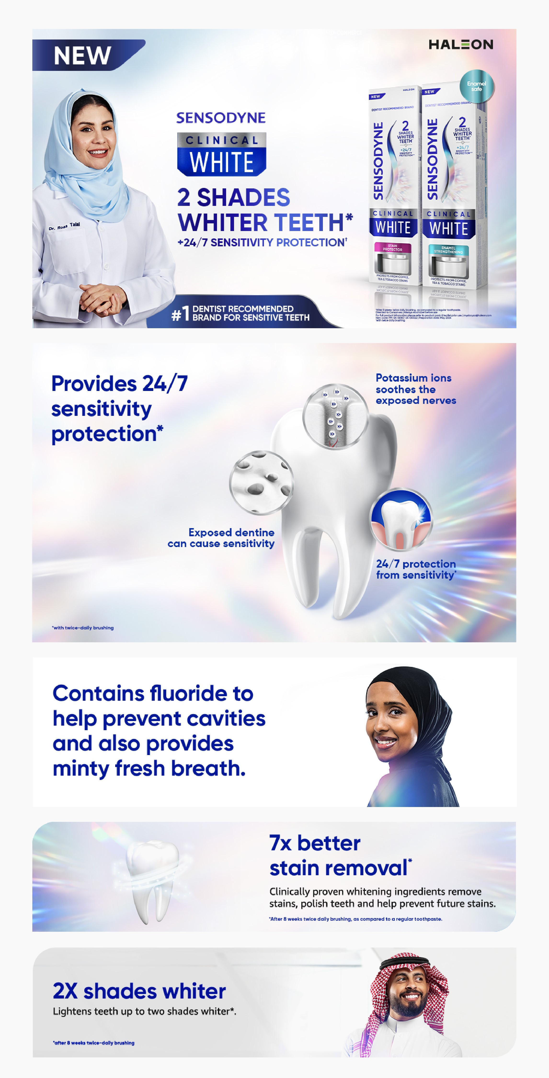Scientifically Proven to Whiten Teeth by 2 shades* and provide 24/7 care for sensitive teeth**