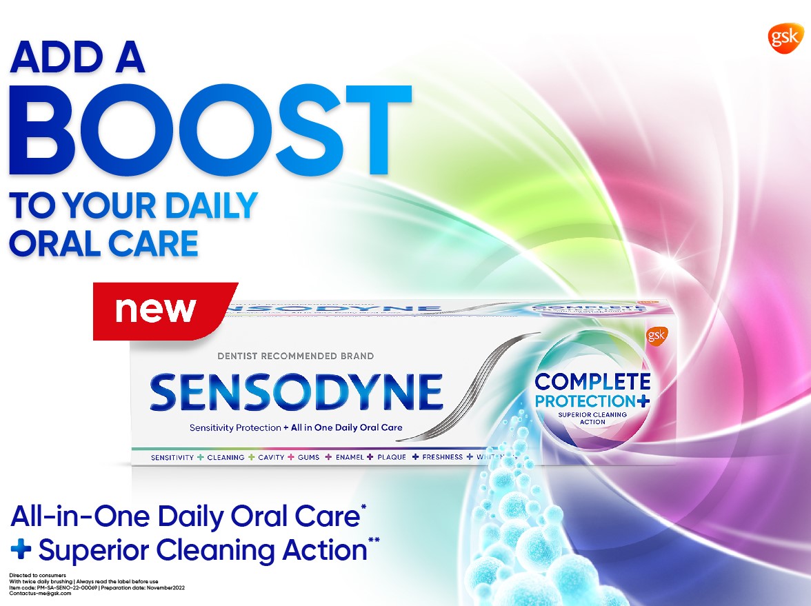 Sensodyne Complete Protection + is a daily toothpaste provides multiple oral care benefits together with clinically proven sensitivity protection. Fresh Breath for lasting fresh feeling. Natural peppermint and sweet spearmint with a touch of citrus oils. Unique formula with an Advanced Cleaning System for Superior Cleaning Action*